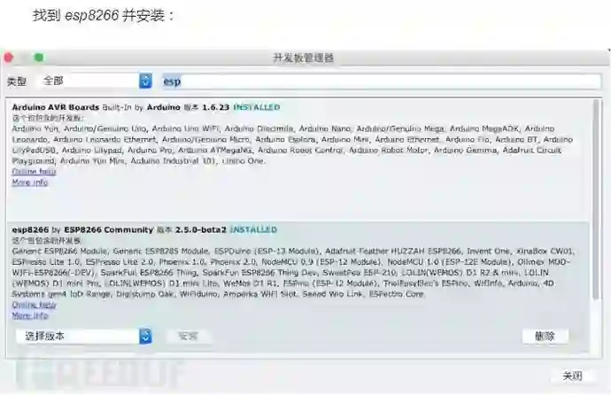 之后点击工具-开发板-开发板管理器,进入开发板管理器界面: