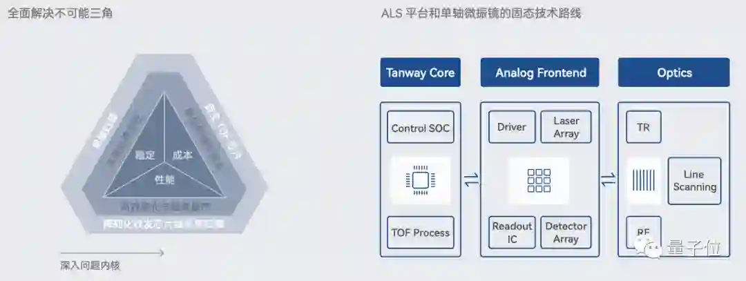 ALS平台下的包括很多不同的技术方案:自主TOF芯片、单轴扫描、高效组装量产(调光流程)等等。