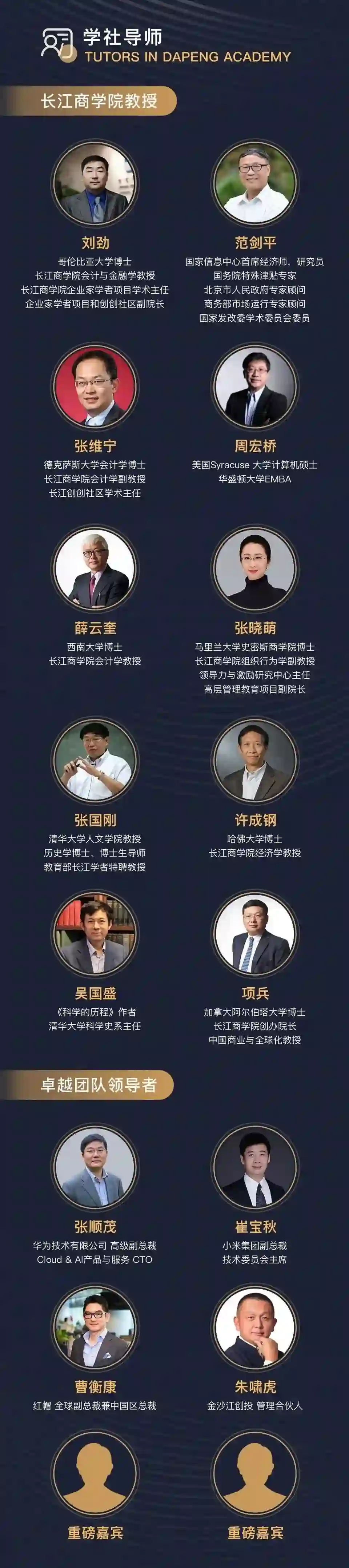 考虑到 TGO 会员及其他管理者的经济承受能力,我们定了一个不高不低的价格。说它不高,是因为在和市面上的同类商学课做对比;说它不低,是在和我们的会费做对比。同时,TGO 鲲鹏会是一个非常好的品牌,长江商学院也是非常好的品牌,导师也都是全球顶尖的教授。这样的课程,很多人可能愿意花上万元去听一节课。我们请了学术界、产业界的十几位导师,肯定是值得参加的。