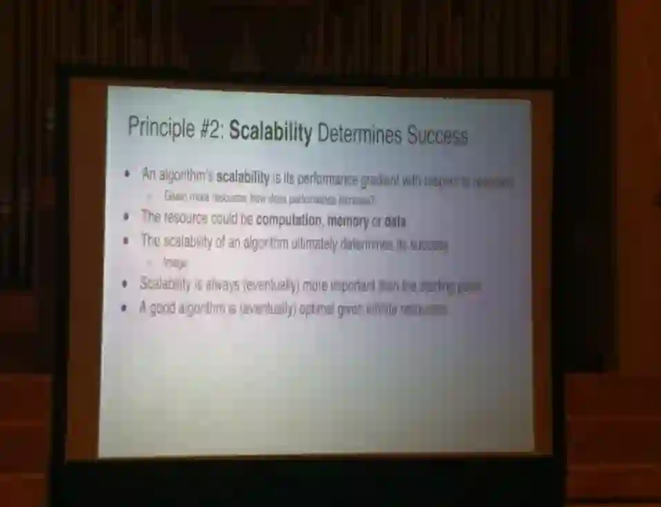 算法的可扩展性的表现取决于资源,而算法的可扩展性决定是否成功:那么给予更多资源,性能如何提高?值得一提的是,这里的资源指的是计算,内存或数据。