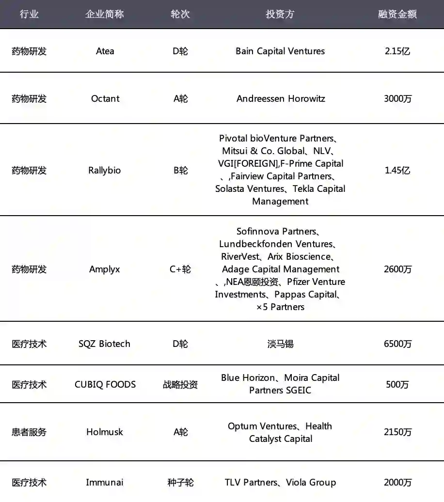 融资事件共16起,其中国内8起,国外8起。据睿兽分析不完全统计,本周国内医疗融资金额总计达4.7亿人民币,海外融资金额总计达5.28亿美元。