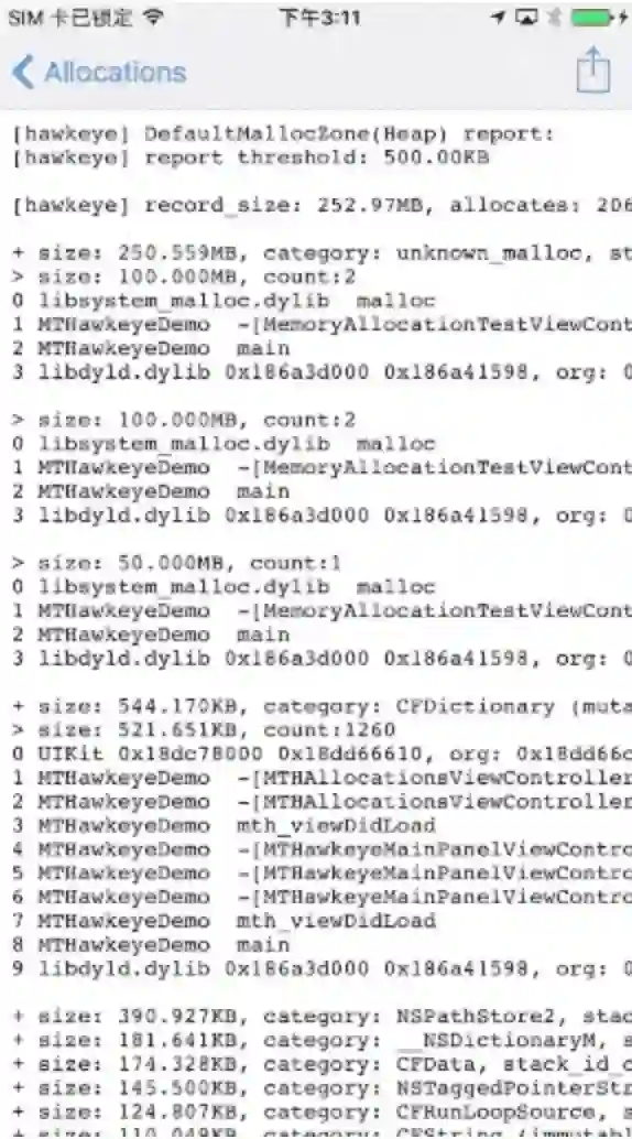 Allocations 类同于 Instrument 的 Allocations 功能,跟踪应用实际分配的内存详情,在应用内存使用异常(异常上升、OOM 退出)时可以通过记录的内存使用详情数据,来排查内存使用问题。