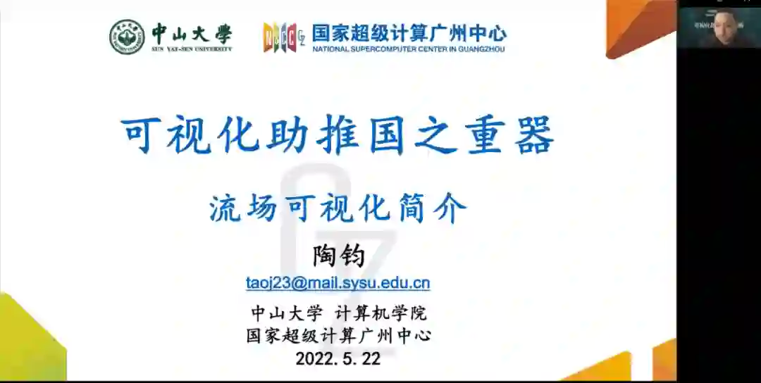2022年5月22日上午,由中国图象图形学学会主办,可视化与可视分析专委会与多所大学共同承办的CSIG-VIS全国科技周科普活动顺利开展。本次活动以“可视化助推大国重器”为主题,由电子科技大学蒲剑苏副教授主持,可视化与可视分析专委会主任、北京大学袁晓如研究员对活动进行了致辞,中山大学陶钧副教授、中国计算空气动力研究所赵丹高级工程师,分别做了题为“流场可视化简介”和“重大工程中的可视化与自主流场可视化软件研制”的科普报告。