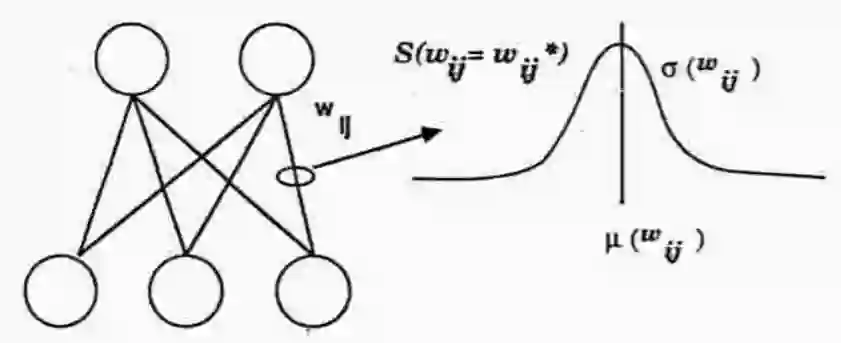 如图 1 所示,我们按照图中的方法实现采用均值为 µwij、标准差为 σwij 的高斯随机变量的 SDR 算法。因此,将从高斯随机变量中采样得到每个权值,作为一种前馈运算。实际上,与 Dropout 类似,指数级别的网络集合通过训练期间的更新采样获取。与 Dropout 在这一点上的区别是,SDR 会调整每个权重上附加的隐藏单元的权重和影响,以便在更新时随误差梯度自适应地变化。这里的效果也与 Dropout 相类似,除了每个隐藏单元的响应会分解到权重上(与分类误差对信用分配的影响成比例)。因此,每个权重梯度本身也是基于隐藏单元预测性能的随机变量,它让系统能够:(1)在相同的例程/刺激下接受多值响应假设,(2)保留一个预测历史,与 Dropout 不同,Dropout 是局部的隐藏单元权重,在某个集合上是有条件的,甚至是一个特定的例程(3)可能返回由于贪婪搜索得到的性能较差的局部最小值,但是同时也远离了更好的局部最小值。局部噪声注入的结果对网络的收敛具有全局影响,并且为深度学习提供了更高的搜索效率。最后一个优点是,如 G. Hinton 所说,局部噪声注入可能通过模型平均平滑误差表面的沟壑,使模型能够更快更稳定地收敛到更好的局部最小值。