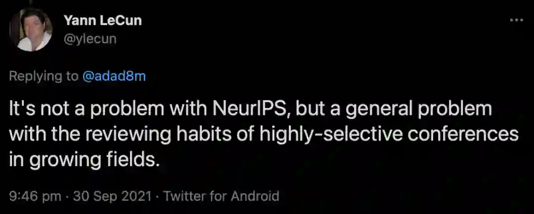 LeCun对此表示,「问题不在于NeurIPS,而是在高速成长的领域中,有高选择标准的会议的审查习惯所带来的的一个普遍问题」。