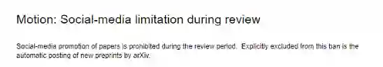 在审查期间,禁止在社交媒体上宣传论文。被排除在这一禁令之外的是 arXiv 自动发布的新预印本。