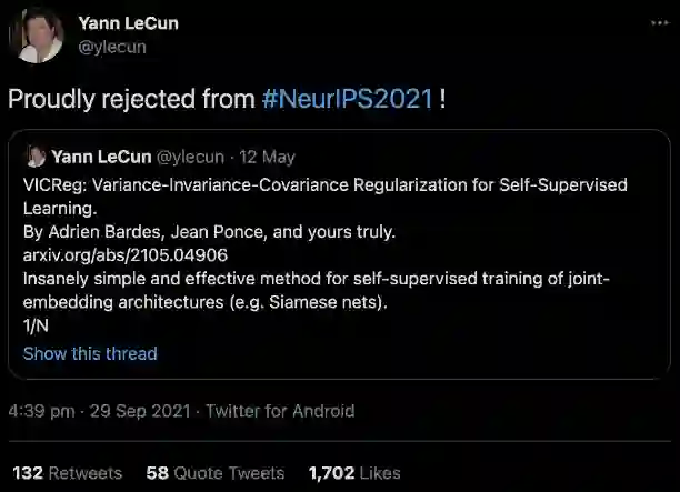 LeCun的推特下有人评论道:即使这篇论文被拒,但这篇论文也因为「Yann LeCun论文被拒」这一消息得到了比大多数NeurlPS论文都要多的关注机会。