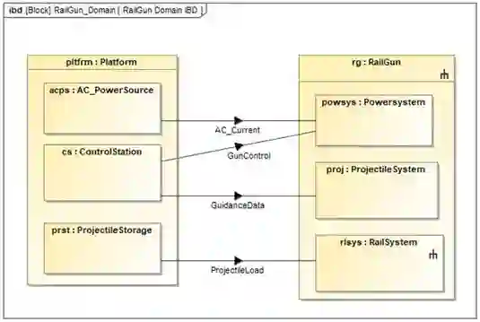 最后,我们需要考虑轨道炮需要的输入。用SysML IBD (内部块图)在非常抽象的级别概括如图5。Railgun需要从Platform获得: