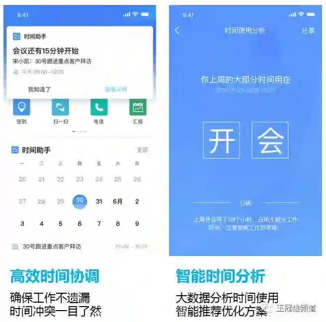 “时间助手”应用解决了效率问题。时间助手可记录管理个人日程并自动提醒;通过日程共享,可实现团队成员时间安排的透明化;通过主动“抢占”领导和同事的时间,可提升整体协作效率。