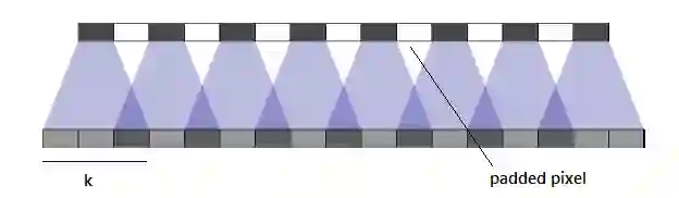 在这个案例中,输出维度由系统预先计算,然后图像在应用过滤器来维护输出维度之前,在外部被填充,去卷积之后,维度结果和计算的一样。优先考虑给图像增加列,图像两侧增加的列要一致。如果不一致,那么额外的列就会被添加到图像右侧。