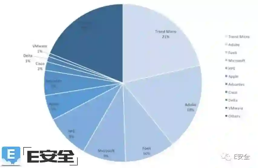 以下为零日倡议项目在2017年所发布漏洞公告的厂商贡献情况: