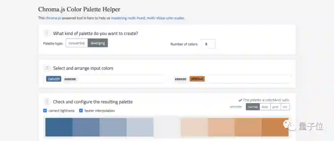 分散调色板更像是两个顺序调色板拼起来一样,只不过区别是颜色较暗淡的放在中间部分,两边各选择明亮的颜色。
