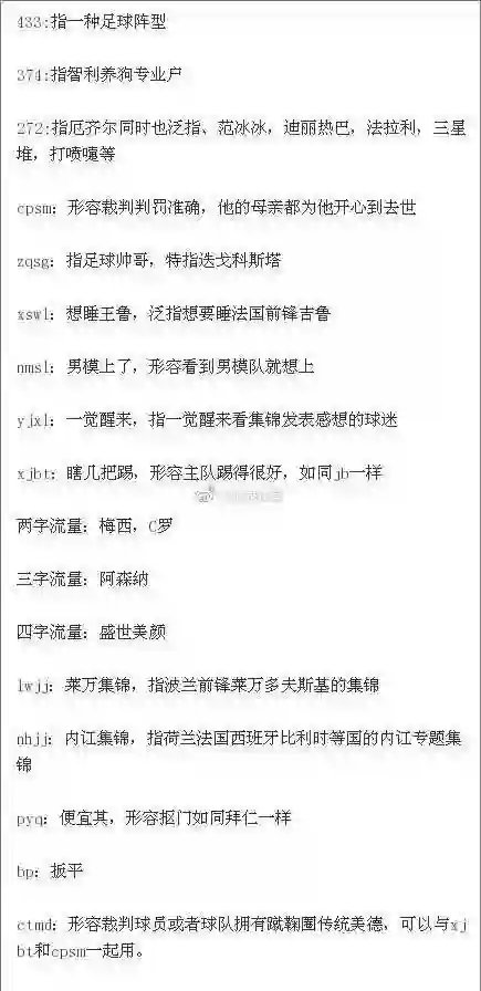 没错,其实球迷圈和饭圈一样,黑话很多。即使是上面这图里的解释部分,也充满了梗。记是记不住的,这辈子都记不住的。面对接梗难题最好的办法其实就是:不要接。