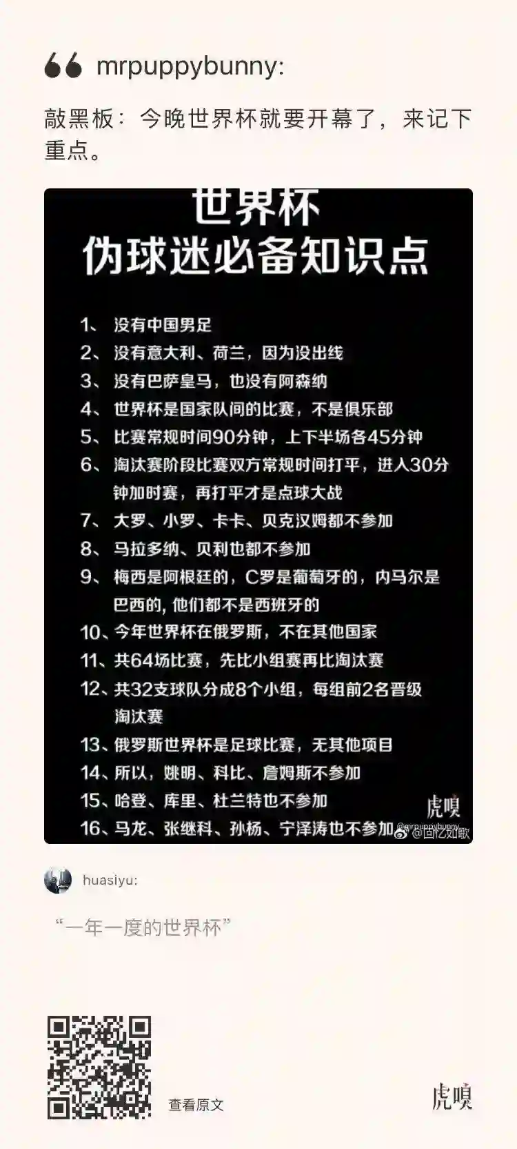 其实世界杯不仅是球迷的节日,反而更可能是很多足球萌新入坑的机会,以及很多四年一度的伪球迷放弃减肥、喝酒撸串的借口。