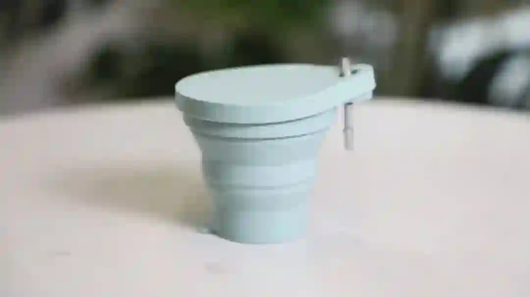 为了解决上一个超大杯存在的问题,本人又购入了上边这个小杯子。这种扁扁平平的硅胶杯又轻又好携带,只有扁扁一片放在包里丝毫不占地方。