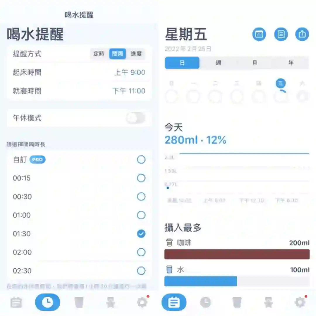 在这浩如烟海,一不留神就要买会员,嘎我韭菜的险恶APP江湖里,本人大海捞针后推荐两款提醒喝水APP。