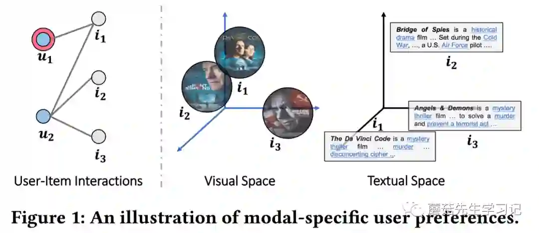 遗憾的是,目前的工作都主要把不同的模态特征作为整体来统一对待,缺乏对特定模态的用户偏好的建模。