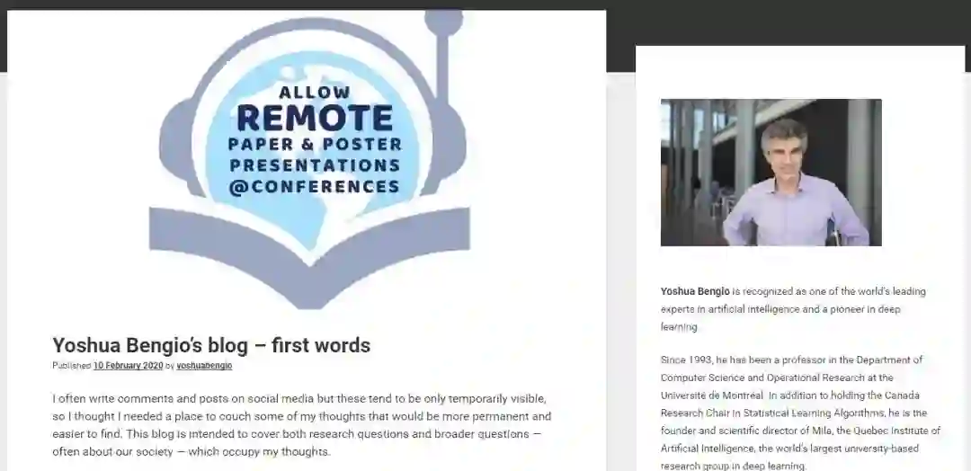近日,2018 图灵奖获得者 Yoshua Bengio,也在他的第一篇博客中从减少碳排放的角度,提倡减少线下会议,增加网络办会。
