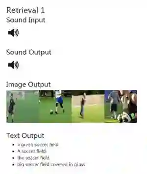 在这项工作中,MIT 的研究人员并没有教给他们的算法任何新东西,而是创造了一种方法,让算法能将不同形式的概念——声音、图像和文字——联系起来。例如,输入一段足球赛的音频,系统会输出另一段与足球赛相关的音频,还输出踢足球的图像和文字描述。