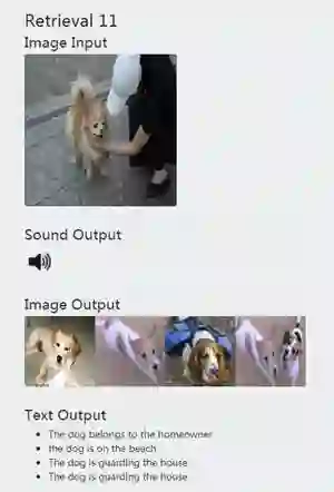 除了输入音频,输出图像和文字,研究人员还做了其他实验,比如输入一张吉娃娃犬的图片,算法能够输出一段带有(其他类型的)狗叫声的音频、其他狗的图片和描述狗的文字。