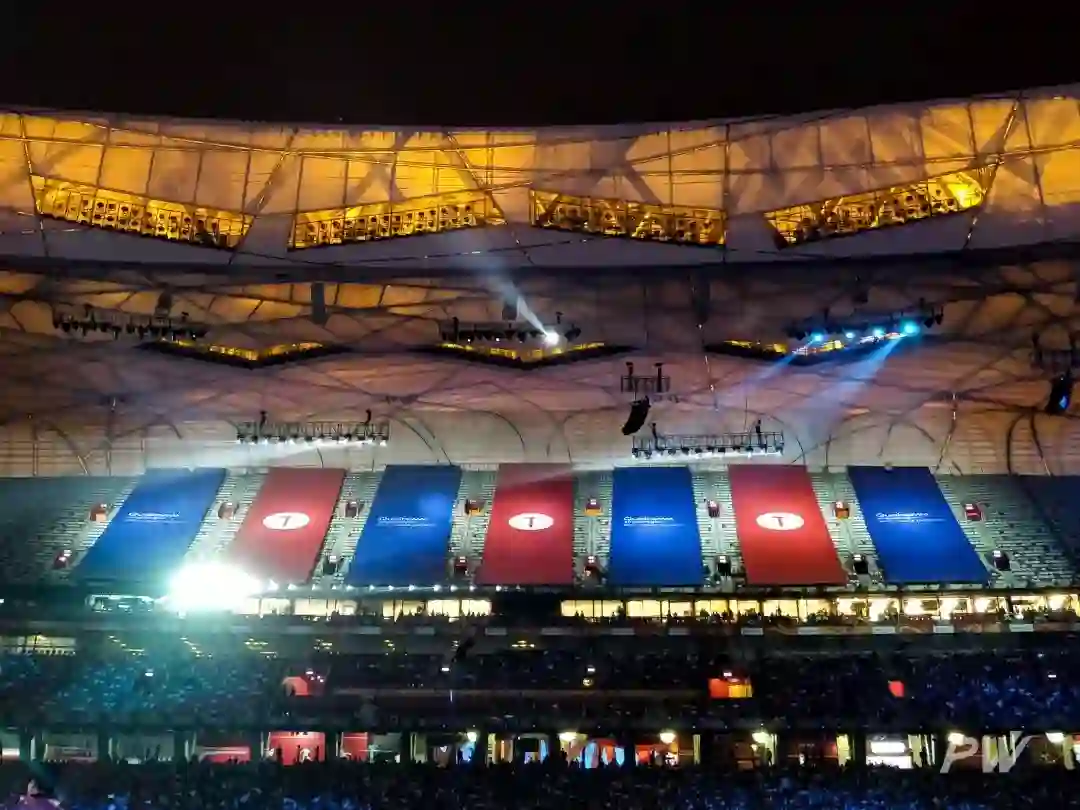 锤子 R1 发布会上的高通旗帜