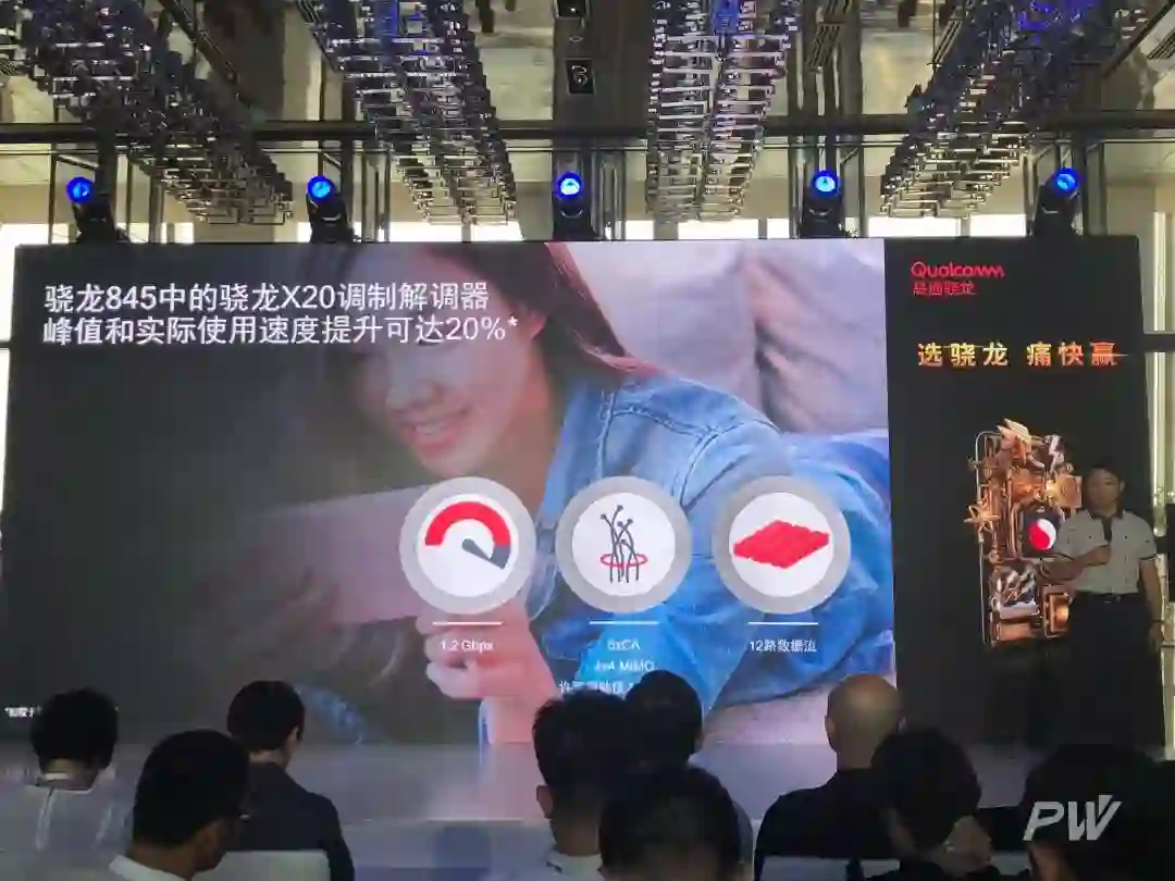 据高通产品市场总监秦牧云介绍,骁龙 845 集成了 X20 LTE 调制解调器,与前一代骁龙 835 搭载的 X16 LTE 调制解调器相比,实际使用的网络速度提升了 20%。其实后者还被应用在了华硕的骁龙本上。骁龙 845 可支持 5 个载波的聚合,最高可以支持 1.2Gbps 下载速度,对于日常游戏来说已经绰绰有余。
