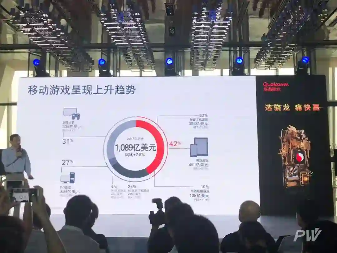 在移动平台上,高通的巨大优势已是业界共识。“幕后英雄”如今选择了走上台面,骁龙旗舰手机的包装盒、锤子发布会现场的旗帜、小米 8 透明探索版背后点睛的高通骁龙处理器 Logo,以及上海的 ChinaJoy。高通对于行业的影响越来越无法忽视,消费者市场亦对其有了新的看法。