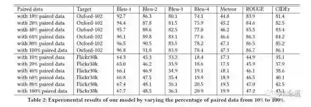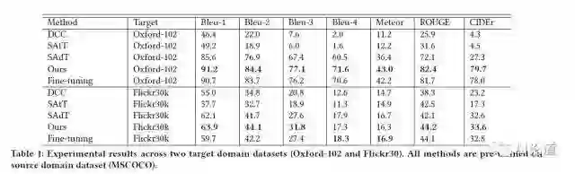为了验证我们的跨领域图片描述生成模型,我们将 MS COCO 作为 source domain,将 Oxford102 和 Flickr30K 作为 target domain。