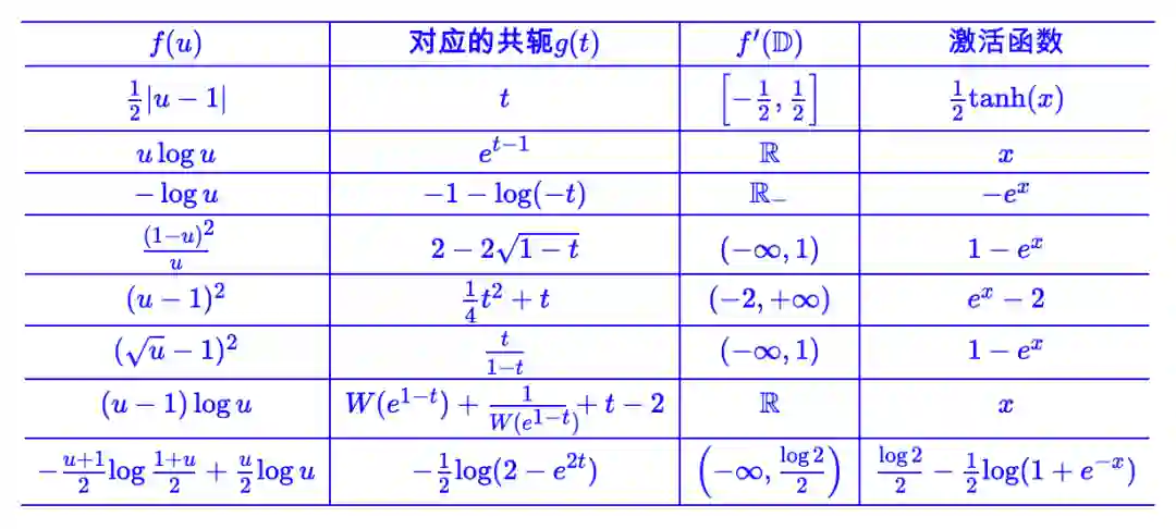 注意在对凸函数的讨论中,我们在最大化目标的时候,对 T 的值域是有限制的。因此,在 T 的最后一层,我们必须设计适当的激活函数,使得 T 满足要求的值域。当然激活函数的选择不是唯一的,参考的激活函数已经列举在前表。注意,尽管理论上激活函数的选取是任意的,但是为了优化上的容易,应该遵循几个原则: