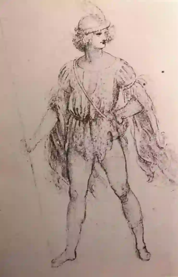 1490 年,一位年轻人搬进了达·芬奇的家里。他有着天使般的面孔和恶魔般的天性,也因此得了一个绰号“萨莱”,这个词的意思是小恶魔。他后来成为达·芬奇最正式的一位长期伴侣。瓦萨里描述他是 “一位优雅而美丽的年轻人,长着达·芬奇喜欢的漂亮卷发”。达·芬奇笔下很多关于性的描述和暗示指的都是他。