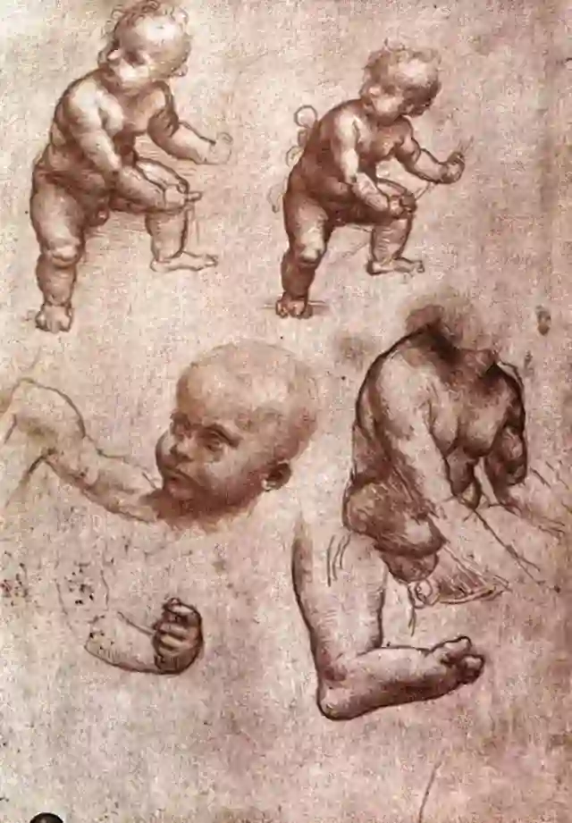 无论是在绘画作品中,还是在笔记本的速写中,达·芬奇对于男性身体的着迷程度远胜于对于女性身体。他笔下的裸体男性透着柔美,很多都是全身像。相比之下,他画的所有女性,除了现已丢失的《丽达与天鹅》,几乎都是穿着衣服的半身像。即便如此,达·芬奇在描绘女性方面依然是一位大师,这一点与米开朗琪罗不同。从《吉内薇拉·德·本奇》到《蒙娜丽莎》,达·芬奇的女性肖像中充满了深切的同情和直抵内心的洞察。