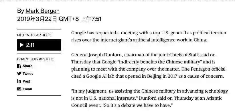 链接:https://www.bloomberg.com/news/articles/2019-03-26/google-ceo-is-said-to-meet-general-dunford-on-wednesday