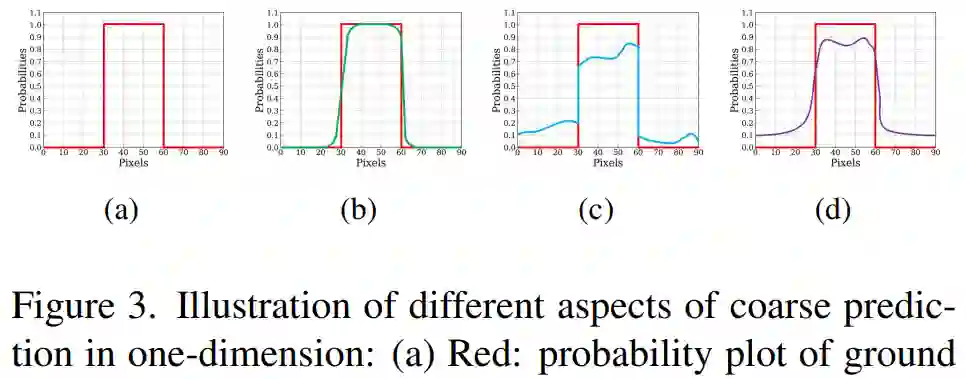 在提出优化模块之前,研究者定义了术语「粗略(coarse)」。在此,粗略包含两方面的意思:一种是模糊和有噪声的边界(如下图 3(b) 中 one-dimension(1D) 所示)。另一种情况是不均匀预测的区域概率(如图 3(c) 所示)。