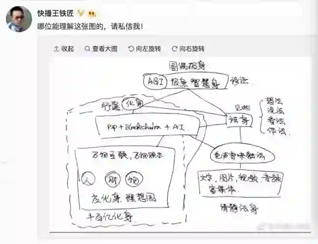 在一张手稿中,王欣将自己对于未来科技的理解,划分为了佛教中的法身、化身、报身。