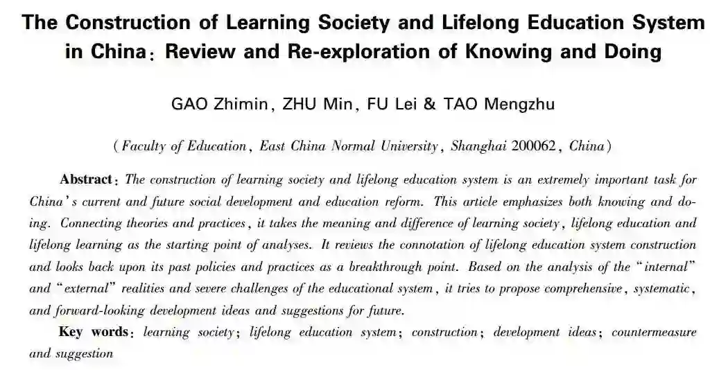 终身教育体系建设是一项庞大的社会工程,需要国家政策的有力推动。回溯过往的种种努力,目的在于认识当下现实,为未来发展寻求新的驱动。
