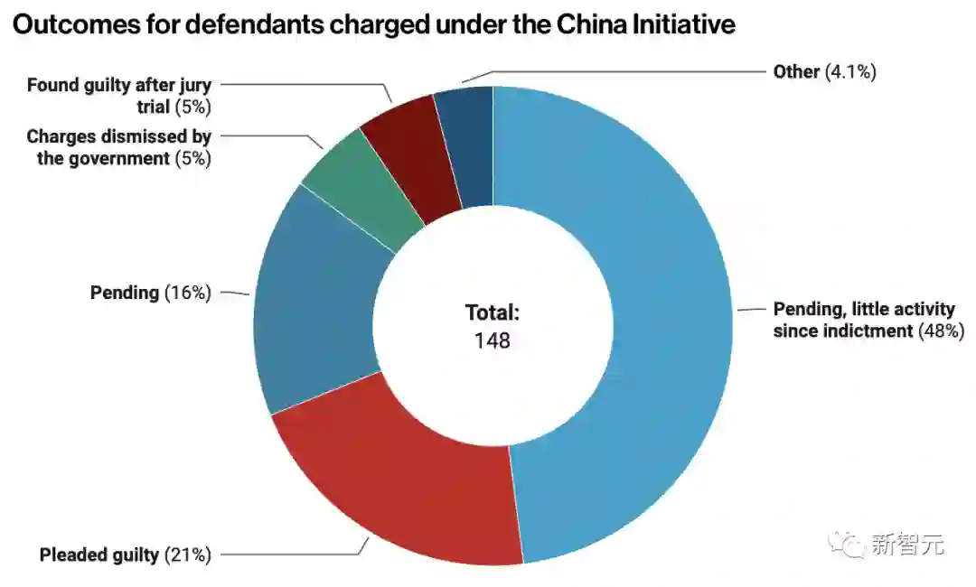 根据《麻省理工科技评论》的不完全统计,截至2021年,「中国行动计划」总共起诉了148人,其中只有40人或自己认罪或被判有罪,64%的案件尚在审理中,95人仍面临指控。 而这148人中,88%的被告是华裔或者华人。
