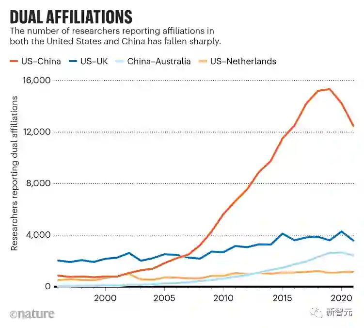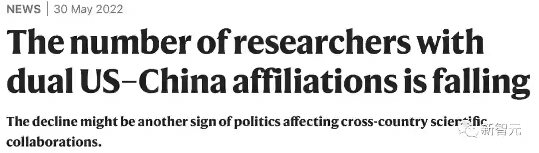 在过去的3年里,各类论文的作者中,表明自己与中国和美国有从属关系的人数下降了20%以上。