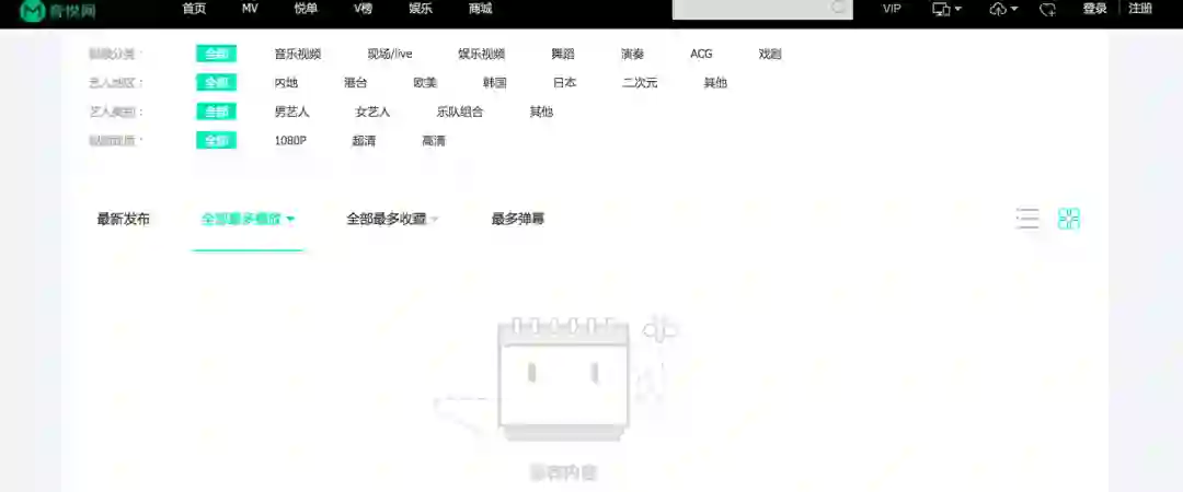 36氪发现,音悦台官网内MV页面已经显示内容空白。