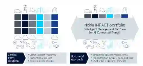 Nokia IMPACT 物联网平台:管理超过15亿台设备,管理各种基于IP的协议和包括NB-IoT/LoRa在内的基于低功耗广域网的协议,将设备管理、数据收集和订阅管理集成,提供完整的物联网管理解决方案。