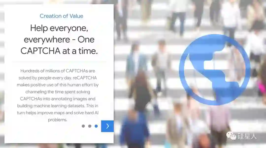 对于这一目的,Google也并不避讳。在reCAPTCHA官网上,Google公开说明了reCAPTCHA集众人之力标注数据、训练AI的“众包”模式。