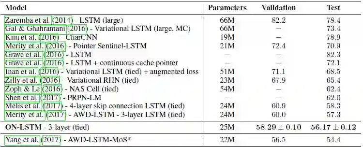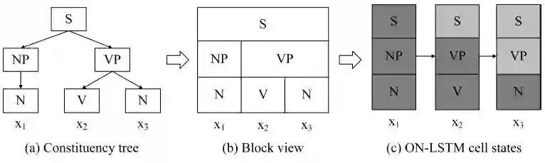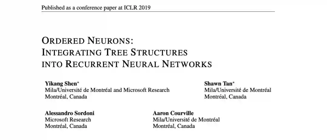自然语言可视为是一种小单元 (如短语) 嵌套在大单元 (如字句) 中的分层结构。当结束一个大单元时,内部所嵌套的小单元也将随之关闭。尽管标准的 LSTM 结构允许不同的神经元跟踪不同时间维度信息,但它对于层级结构建模中的各组成没有明确的偏向。针对这个问题,本文提出神经元排序策略来添加一个归纳偏置量 (inducive bias),当主输入向量和遗忘门结构确保给定的神经网络更新时,后续跟随的所有神经元也将随之更新。这种集成树结构的新颖循环神经网络 ON-LSTM (ordered neurons LSTM) 在四种不同的 NLP 任务:语言建模、无监督解析、目标句法评估和逻辑推理上都取得了良好的表现。