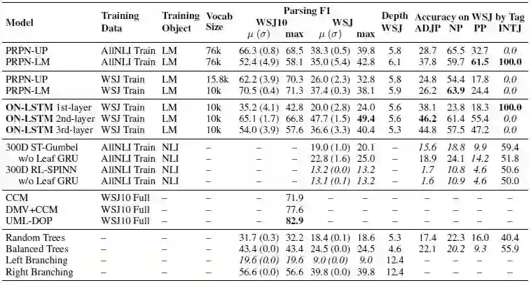 在四种 NLP 任务中评估 ON-LSTM 模型的性能,具体如下。