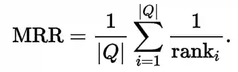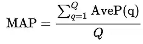 在我们候选答案句抽取的实验中,我们使用的评价指标为平均排序倒数(MeanReciprocal Rank,MRR)和平均准确率(MeanAveragePrecision ,MAP),而最常用的要数MRR指标。其中,MRR指标无论从公式还是名字来看,都一目了然,即对所有排序倒数求平均。而MAP相对复杂一些,AveP求的是对于一个问句和n个候选答案句的准确率,k是检索回来答案句的排名,m是正确答案句的数量,n是所有候选答案句的数量,p(k)是前k个句子的准确率,rel(k)对应第k个句子如果是正确答案,则为1,否则为0。