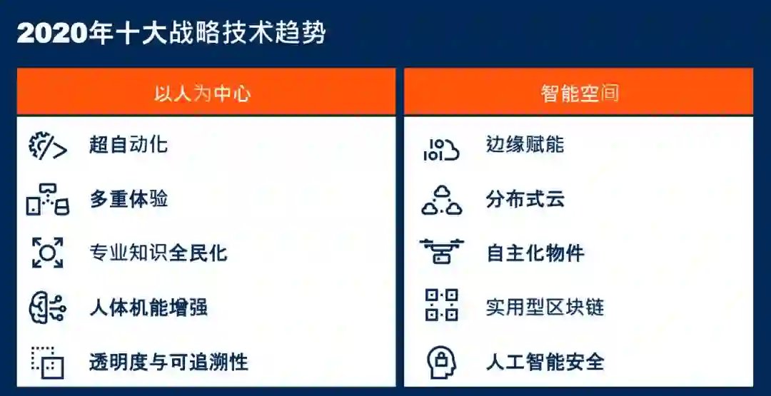 以下是Gartner确定的2020年十大战略技术趋势: