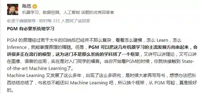 PGM作为机器学习的重要框架,奠定了统计机器学习的基础。在深度学习的统治江湖的时代,概率图模型有没有必要系统学习一下呢?知乎上这个问题获得了19万的浏览量,大家在强调PGM重要性的同时,将其誉为最优美的机器学习框架之一,系统学习PGM是深入理解机器学习发展脉络与知识体系的必备基础。