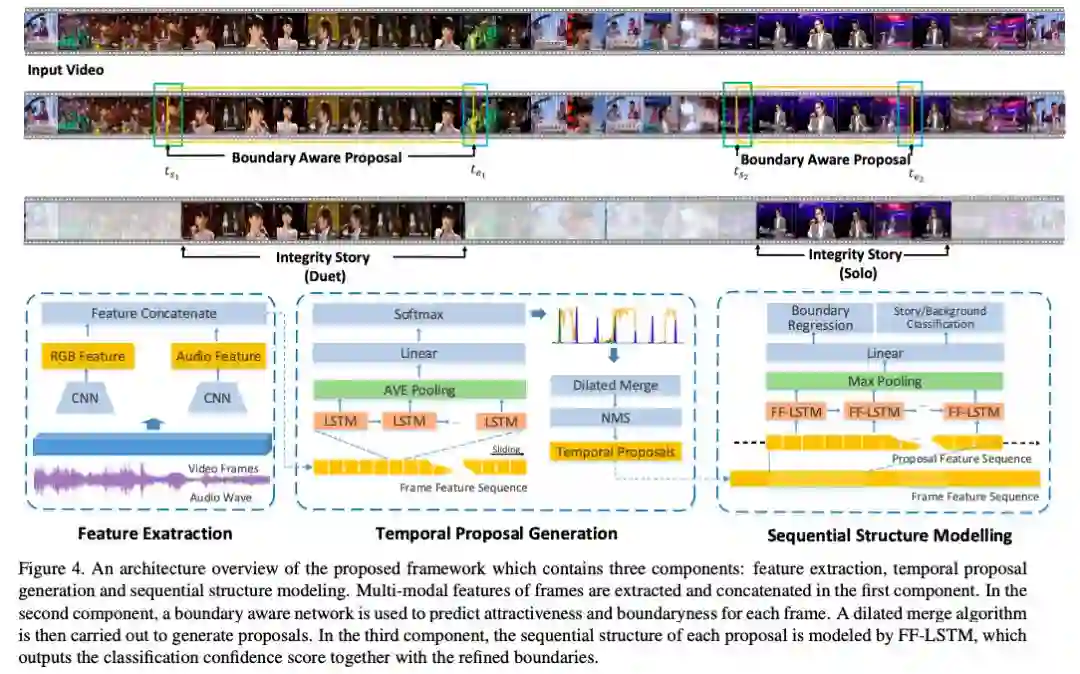 BAN通过同时考虑帧级别的吸引力大小和是否为边界来生成高质量的候选时间片段。FF-LSTM则用于捕获一系列帧之间的高阶依存关系来确定候选时间片段是否是连贯且完整的故事。