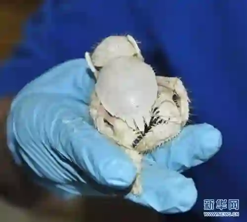 这是“蛟龙”号在南海一冷泉区采集到的毛瓷蟹(2013年7月9日摄)。新华社记者 张旭东 摄