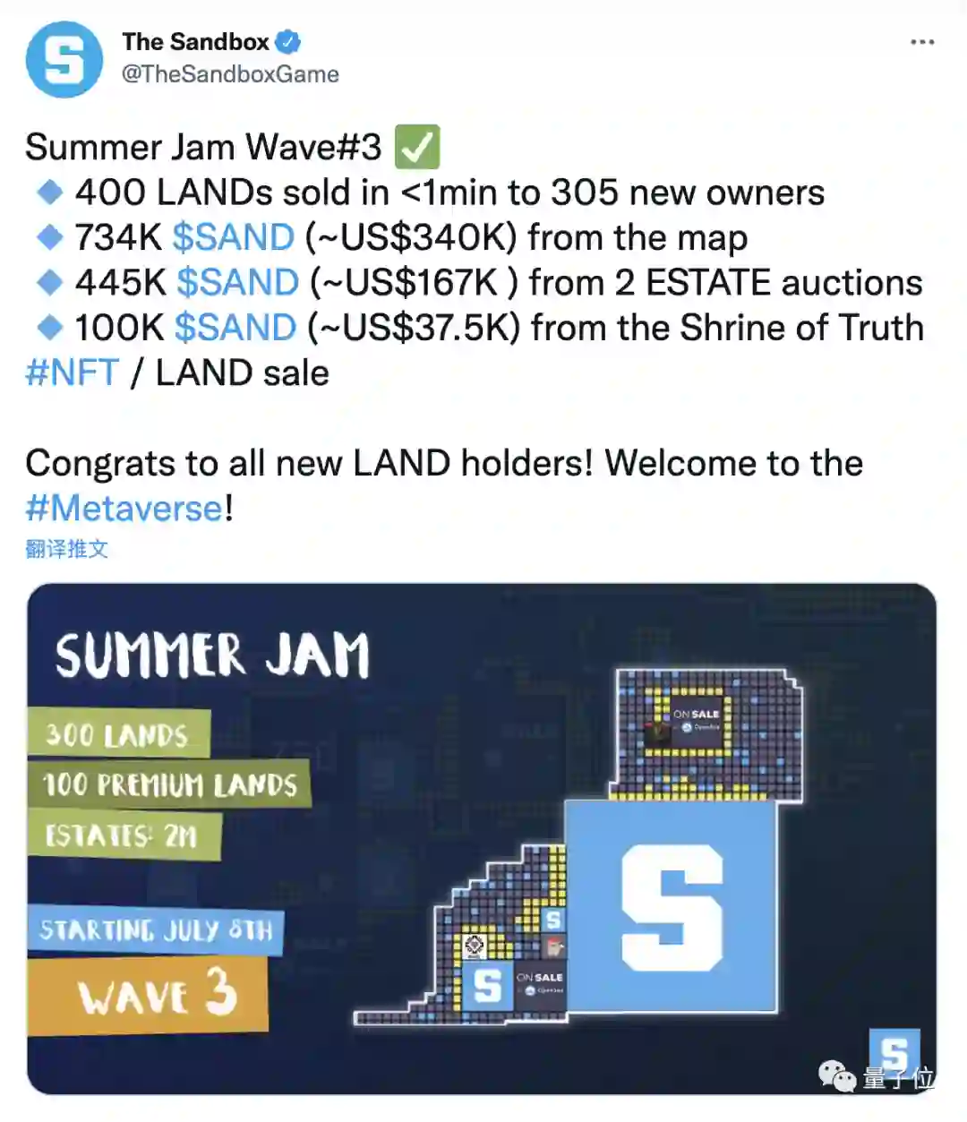 和普通玩家不同的是,资本把Sandbox的房地产事业看成“香饽饽”。