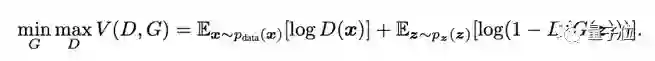 上面对于生成器和判别器功能的描述当然只是一个美好的愿景,我们需要训练它们尽量接近我们的期望。看下面这个损失函数: