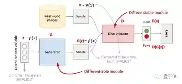 为了知道变换后的分布是不是如我们所愿接近训练数据的分布,GAN引入了一个新的模块D,输入一个样本点x,输出D(x)代表着x是来自训练数据分布的概率。不难想象,对于一个完美的D,输入任何训练数据集中的数据,其输出应该是1。我们来总结一下GAN的两个模块: